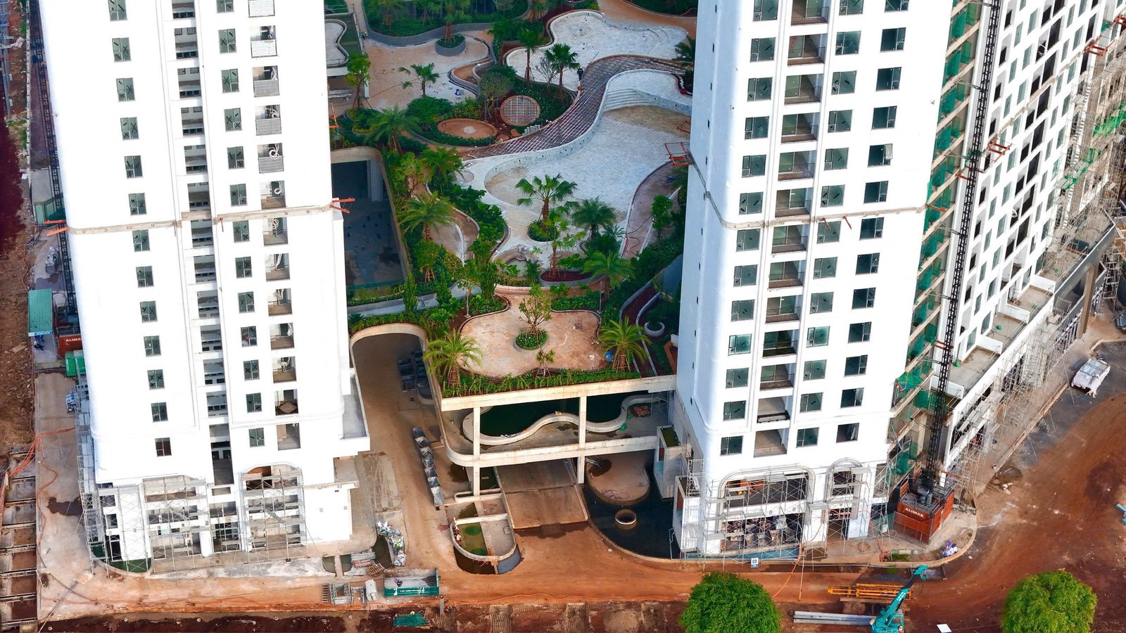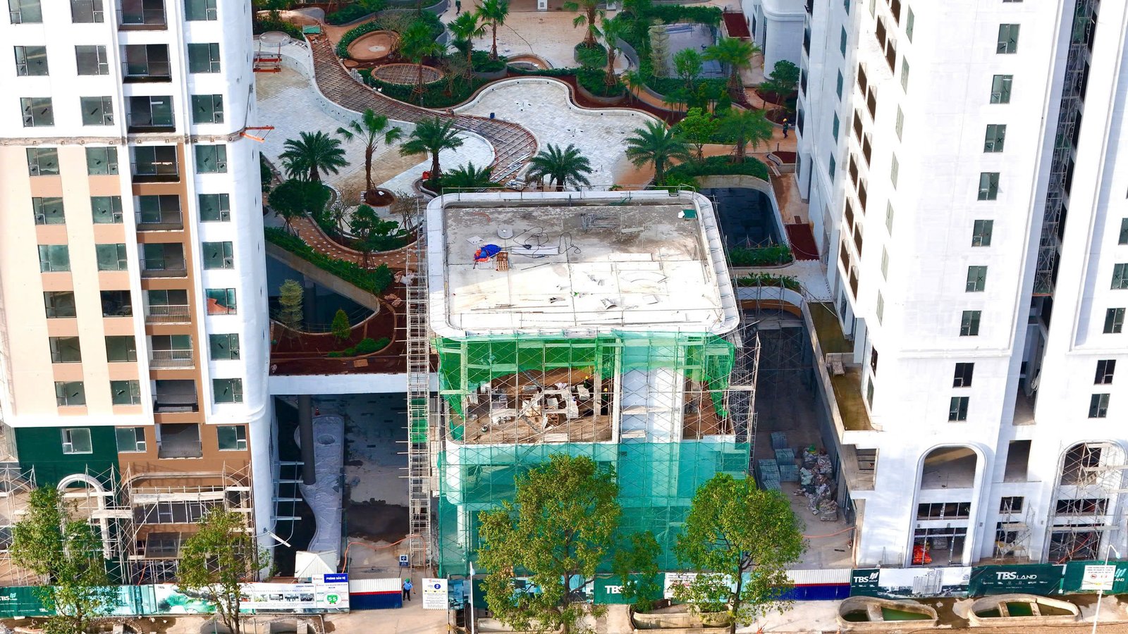 Khu vực bên trong các tòa tháp đang được triển khai song song: